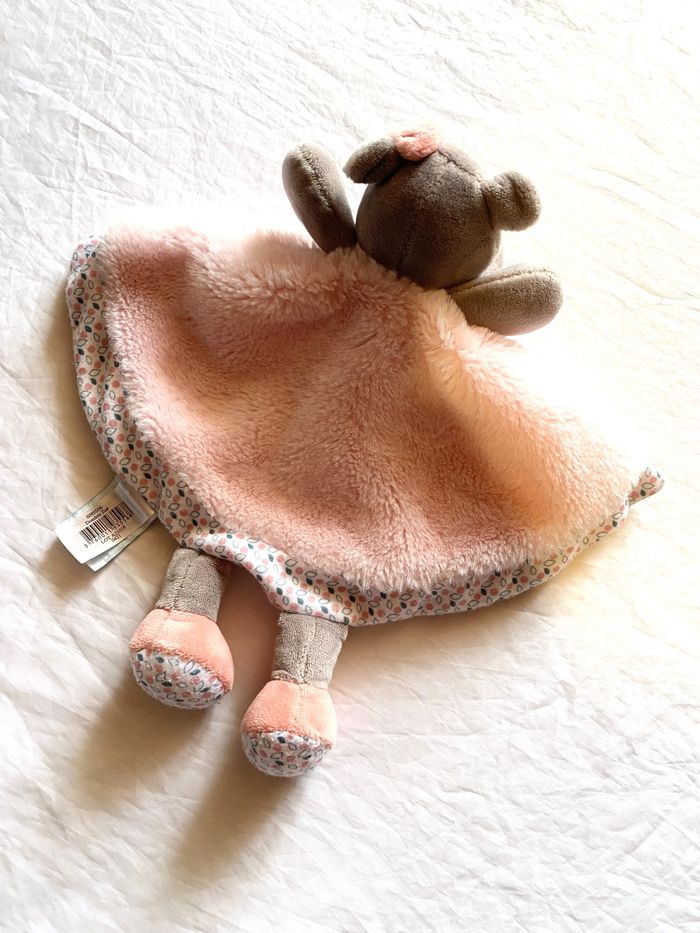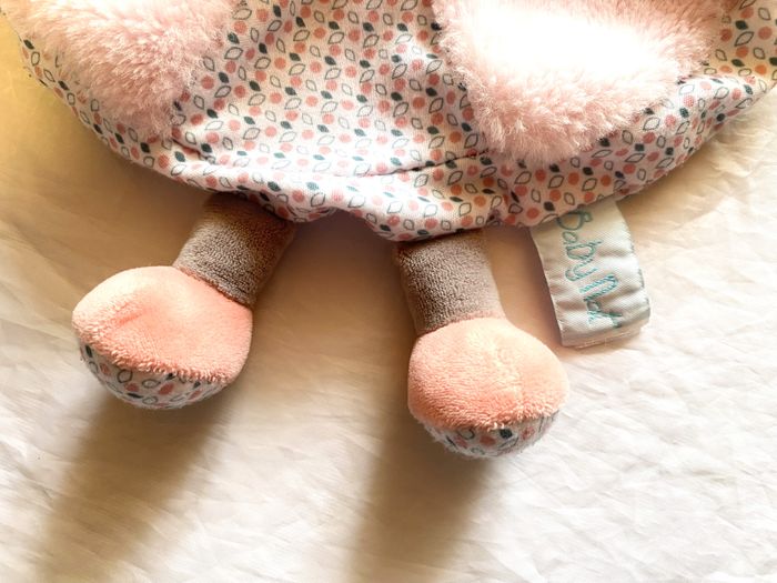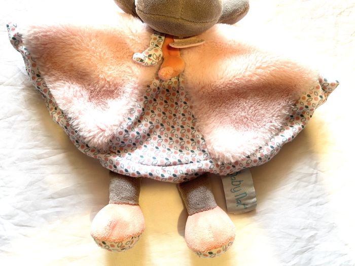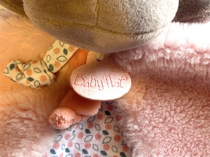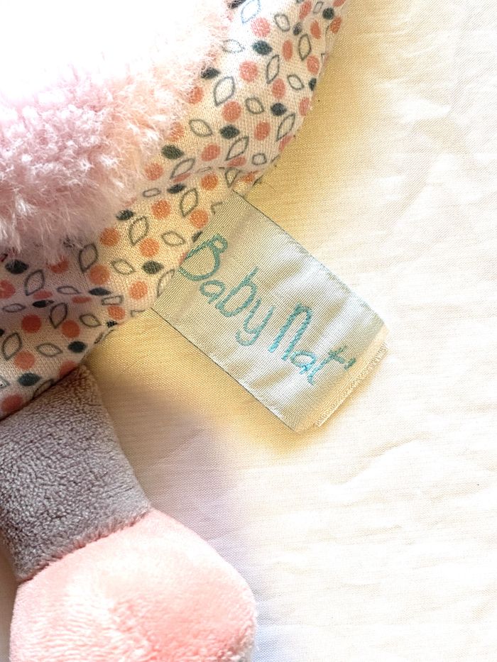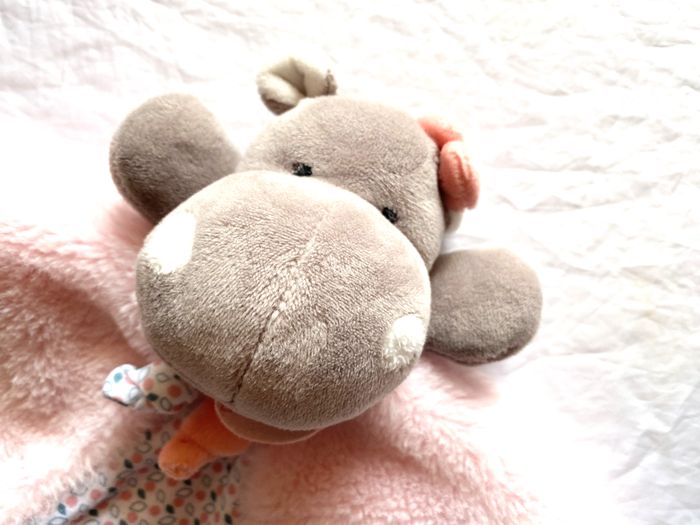 Petit Rhinocéros Gris "Doudou" avec une Robe Demi Ronde Rose "Animal - Faune".