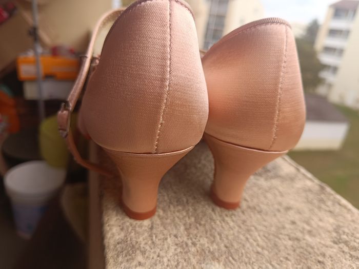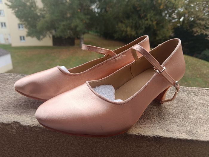Chaussures de danse de salon taille 39 et demi 40 jamais porter avec quelques petites traces mais rien de méchant voir photos couleur rose satiné pas de marque de noté