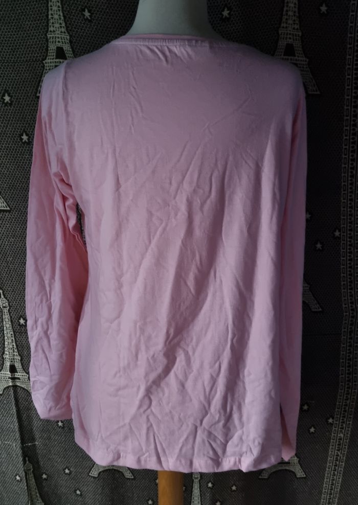 Haut de pyjama t-shirt à manches longues rose imprimé Minnie Mouse et Daisy Duck,longueur 67cm, largeur 48cm, longueur épaule à aisselle 23cm, largeur aisselle à aisselle 50cm, longueur manche 52cm, largeur épaule à épaule 36cm.