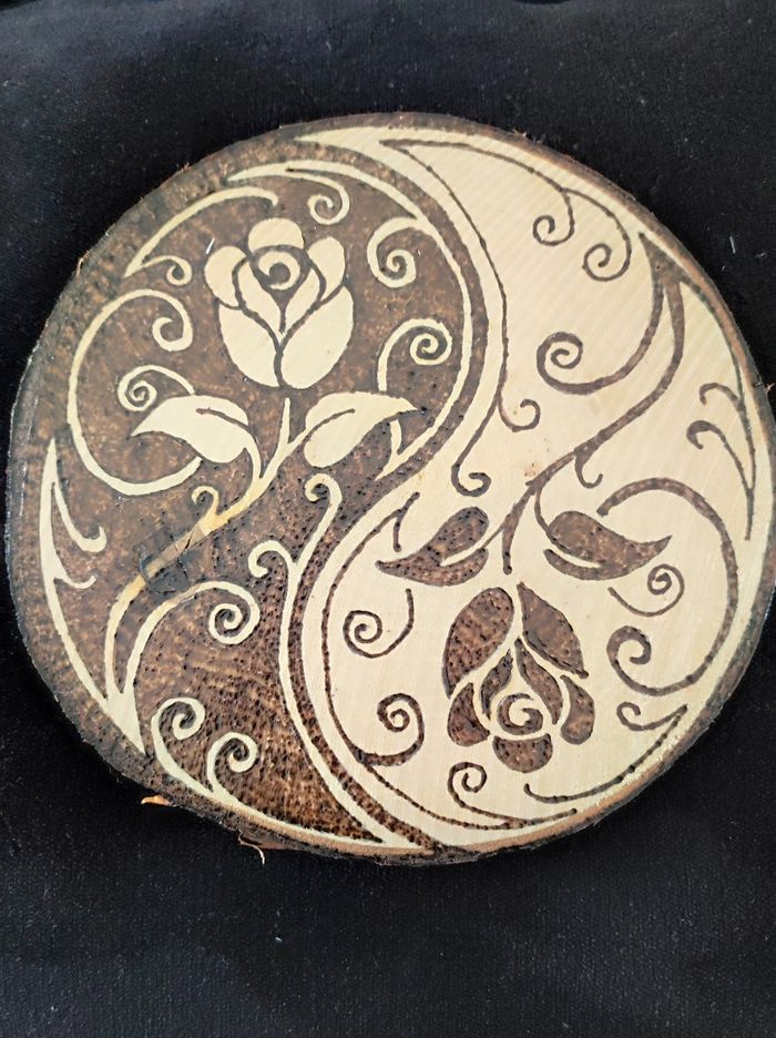 Rondin de bois Gravé à la main ✋🏻 Thème rose ying yang 🧘🏻‍♂️ Envoi rapide et soigné 😉