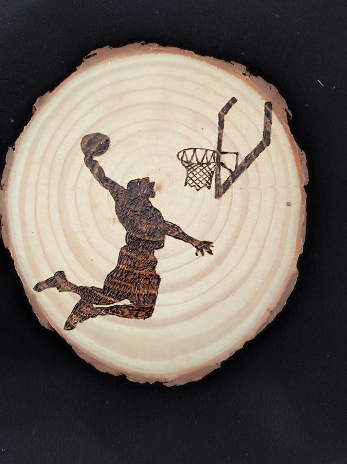Rondin de bois Gravé à la main ✋🏻 Thème basket basketteur Envoi rapide et soigné 😉 fait