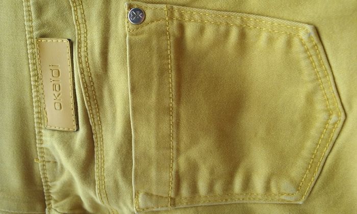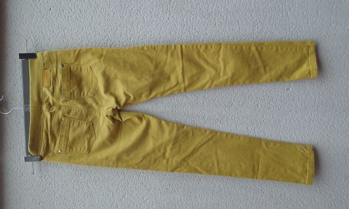 Taille réglable, 98% coton-2% élasthanne, coloris jaune moutarde.