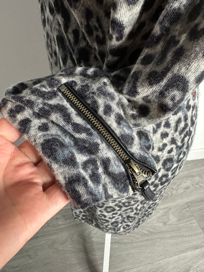 Robe - Excellent état - Taille 3 équivalent 40 L Dimensions en bas de l’annonce - Marque Gérard Darel - Imprimés léopard - Zip au niveau des manches - Deux petites poches à l’avant - Détails en similicuir - 100% laine - Ultra douce et chaude Dimensions: - 45 à 55cm niveau aisselles - 87cm de long