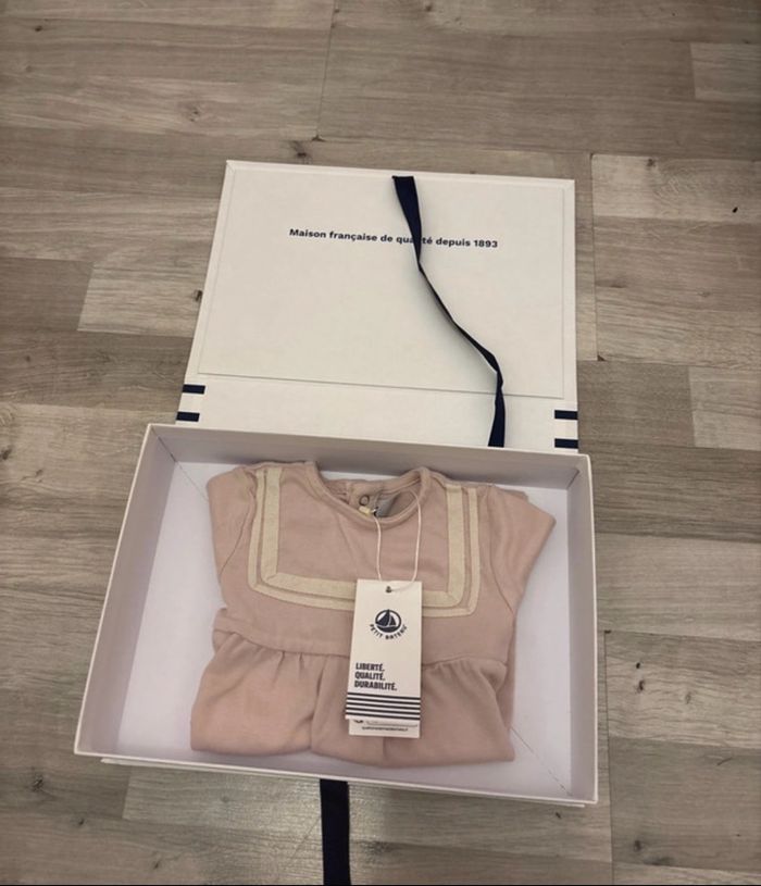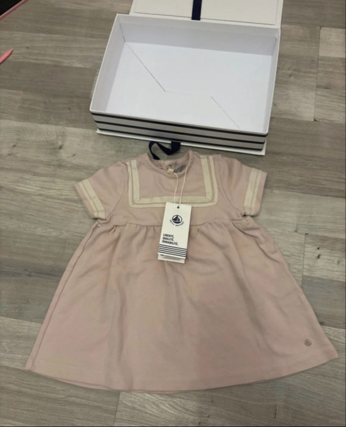 Robe d’été rose et beige Petit bateau, taille 6 mois Neuve avec étiquette et boîte