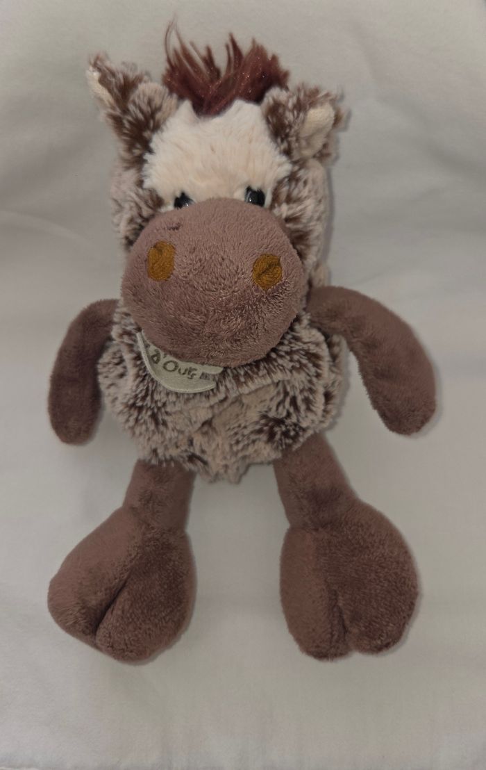 Doudou peluche cheval z'animoos marron chiné- Histoire d'ours Doudou peluche cheval z'animoos en velours chiné de couleur marron. Yeux billes. Cheval qui mesure 24 cm env. Petites billes dans le corps.