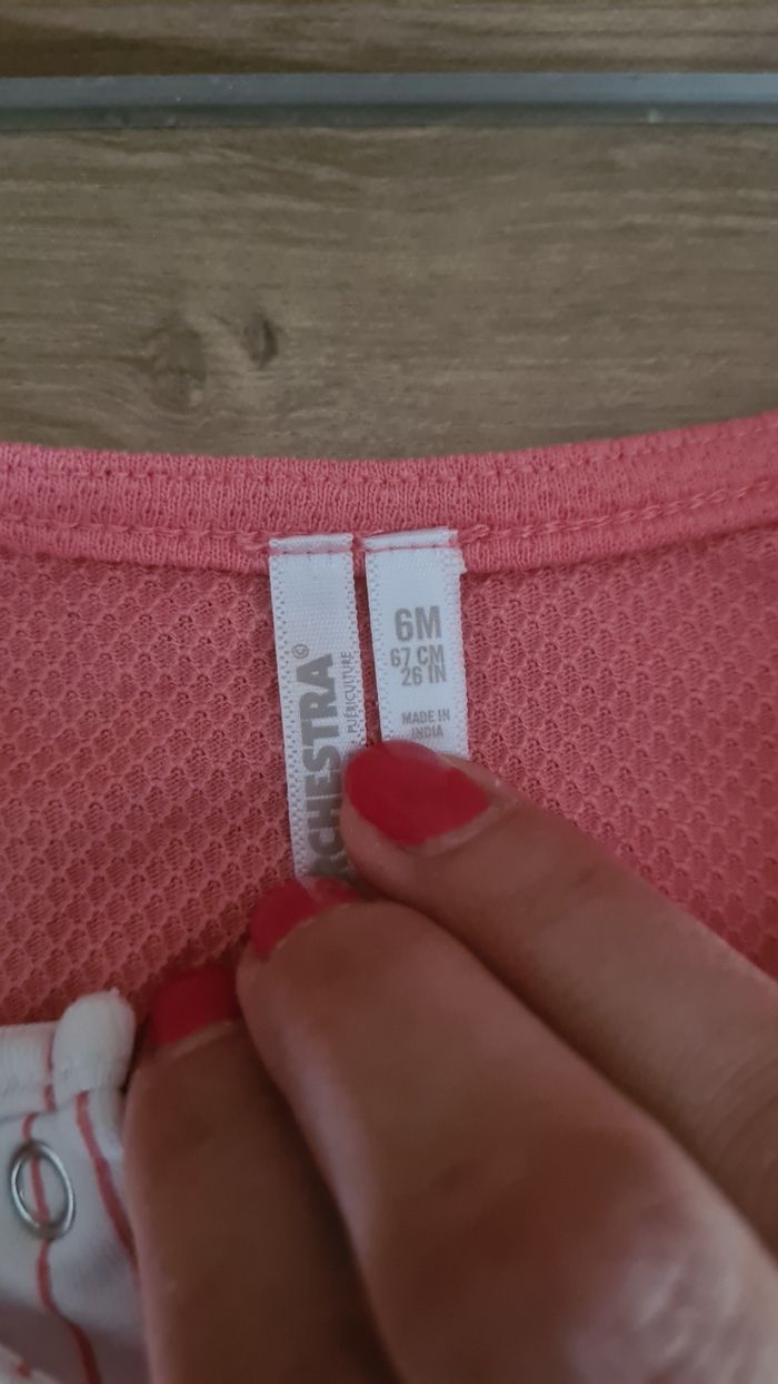Mignon petit ensemble comprenant : 1 legging Orange corail 1 tunique motif chat Et un petit gilet orange corail Taille 6 mois Marque orchestra En parfait état, peu porté