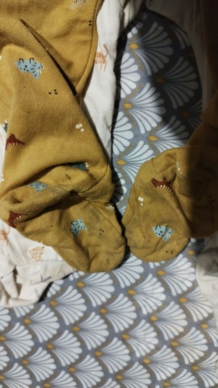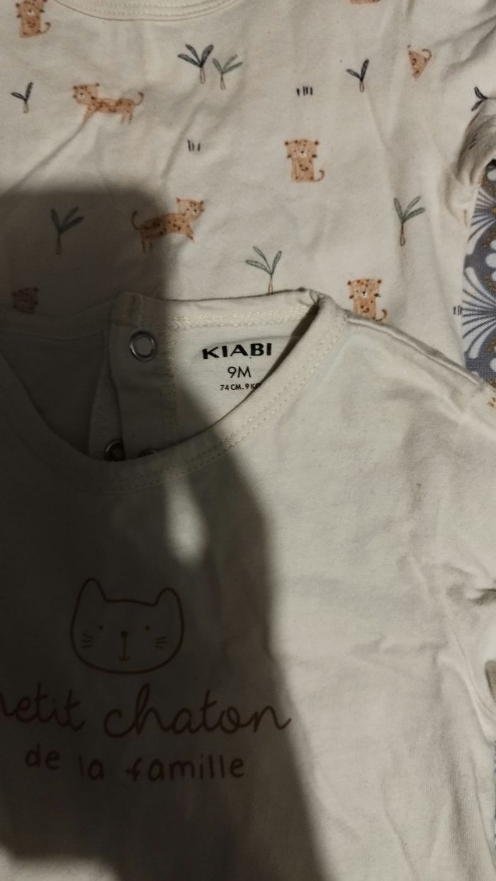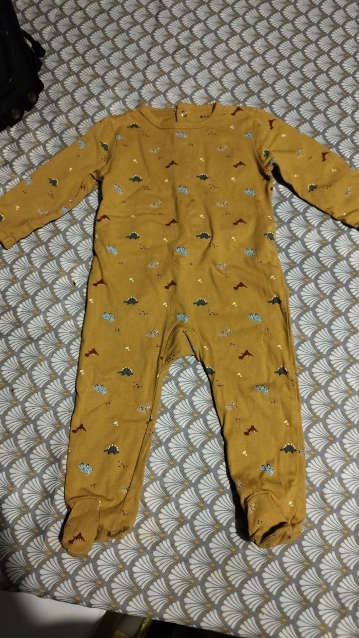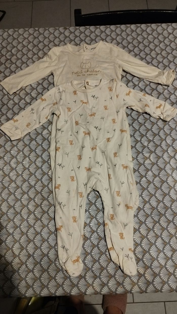 Lot de 3 pyjamas Kiabi Taille 9 mois Très bon état sauf le marron, il a les pieds un peu noircit.