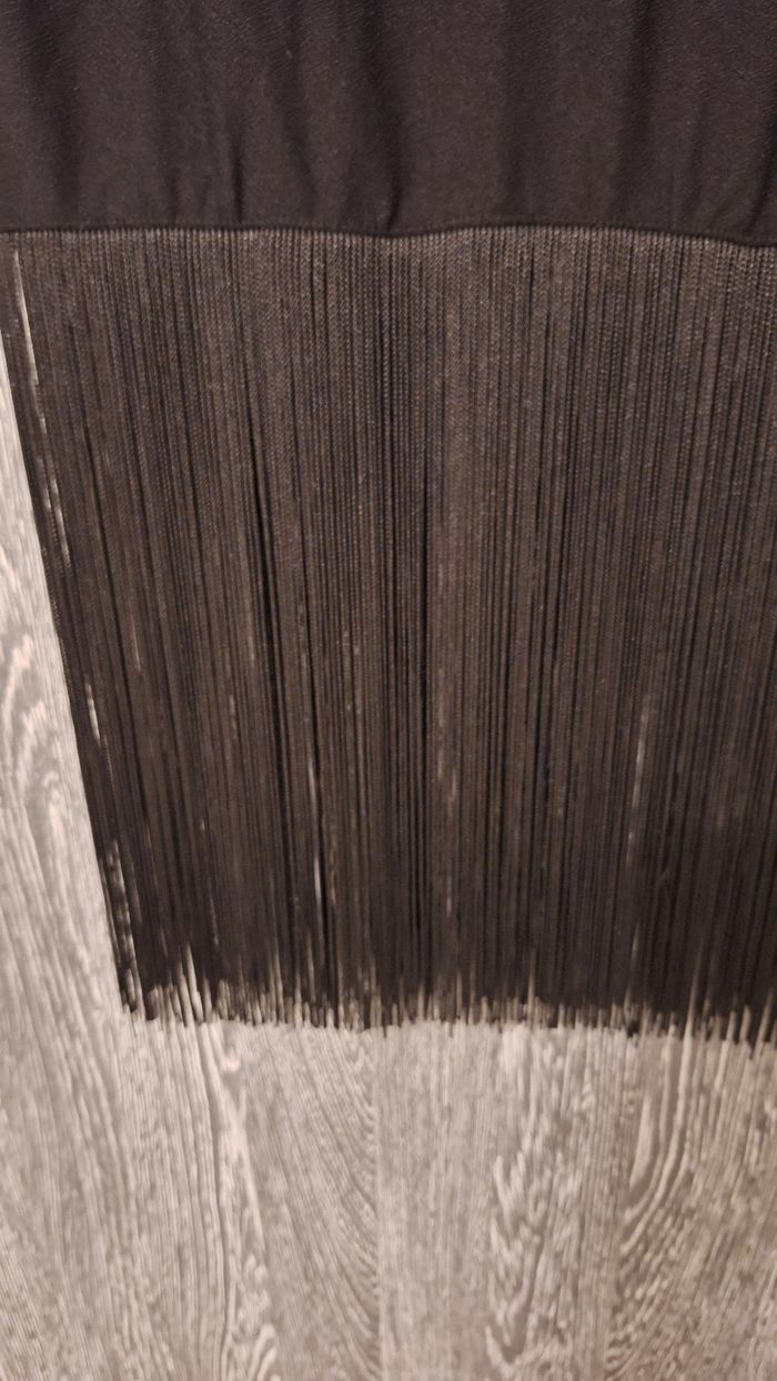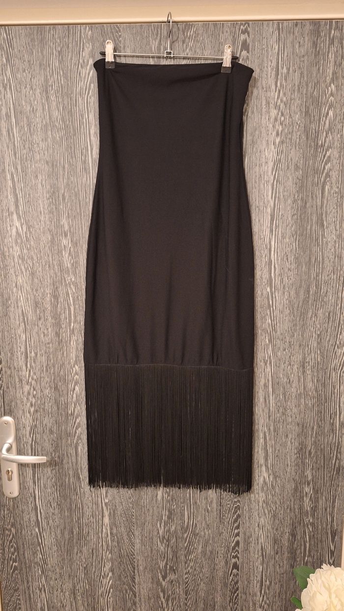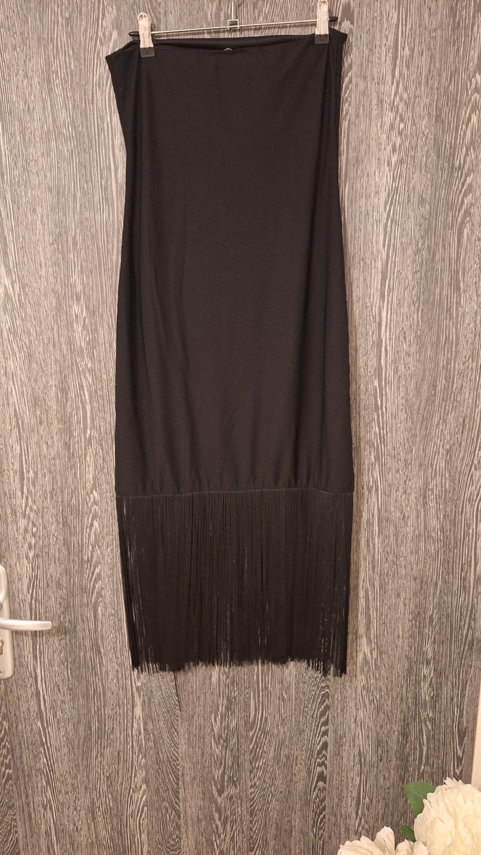 Bonjour ✴️Je vends cette robe en parfait état (juste essayée) ✴️De la marque Pimkie ✴️Taille M-38 ✴️Couleur uni noire ✴️Longueur de Robe depuis le dessus de la poitrine 105cm ✴️Avec frange sur le bas d'une longueur de 35 cm ✴️Largeur niveau poitrine 37cm ✴️Robe bustier entièrement doublée ⚠️Robe se portant près du corps (5% élasthane et 95% polyester)