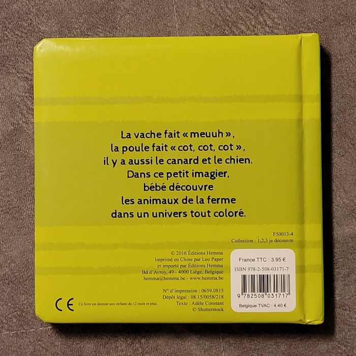 Bonjour, Je vends ce livre nommé - Je découvre les animaux de la ferme Adèle Constant - en bon état. Si vous rechercher un livre ou un acteur en particulier et pour gagner du temps, n'hésitez pas à me le demander, je vous répondrais dès que possible 😇 Veuillez vous abonner pour recevoir toutes les nouveautés Pour autres infos n'hésitez pas à me contacter. ***** Merci de votre visite *****