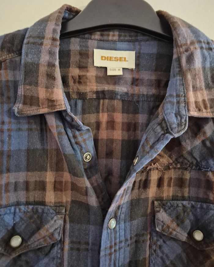 Chemise homme à carreaux Diesel homme bleu et marron taille M 38 - photo numéro 6