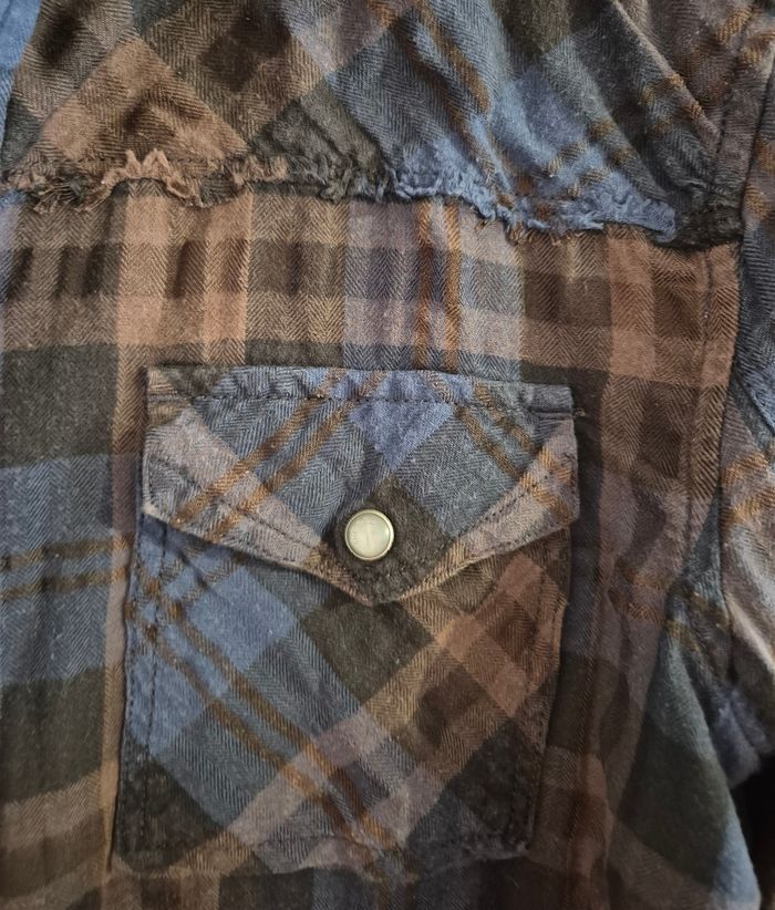 Chemise à carreaux Diesel pour homme couleur bleu et marron Fermeture par pressions deux poches à rabat sur la poitrine base effilochée ainsi que sur une manche Taille M, Tres bon état #diesel #chemisehomme #chemisediesel #carreaux #modehomme #streetwear #bleumarron #lookdécontracté #dieselhomme #chemiseacarreaux #chemisedieselhomme #diesel38 #homme38