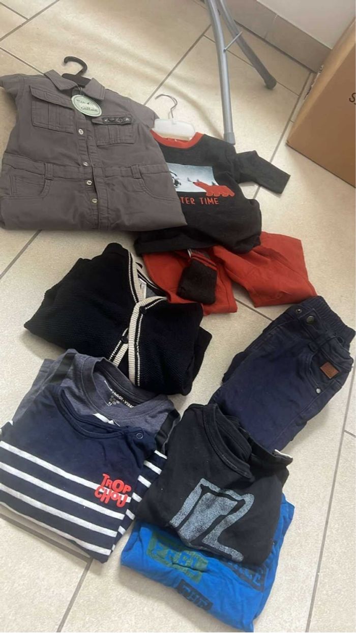 Lot de 24 mois 1 combinaison neuf (mes petit cailloux) 1 ensemble 3 pièces neuf Intermarché plus 1 gilet orchestra 2 pantalon et 4 manches longue