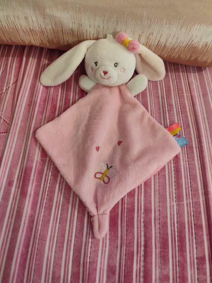 Doudou lapin rose sucre d'orge - photo numéro 1