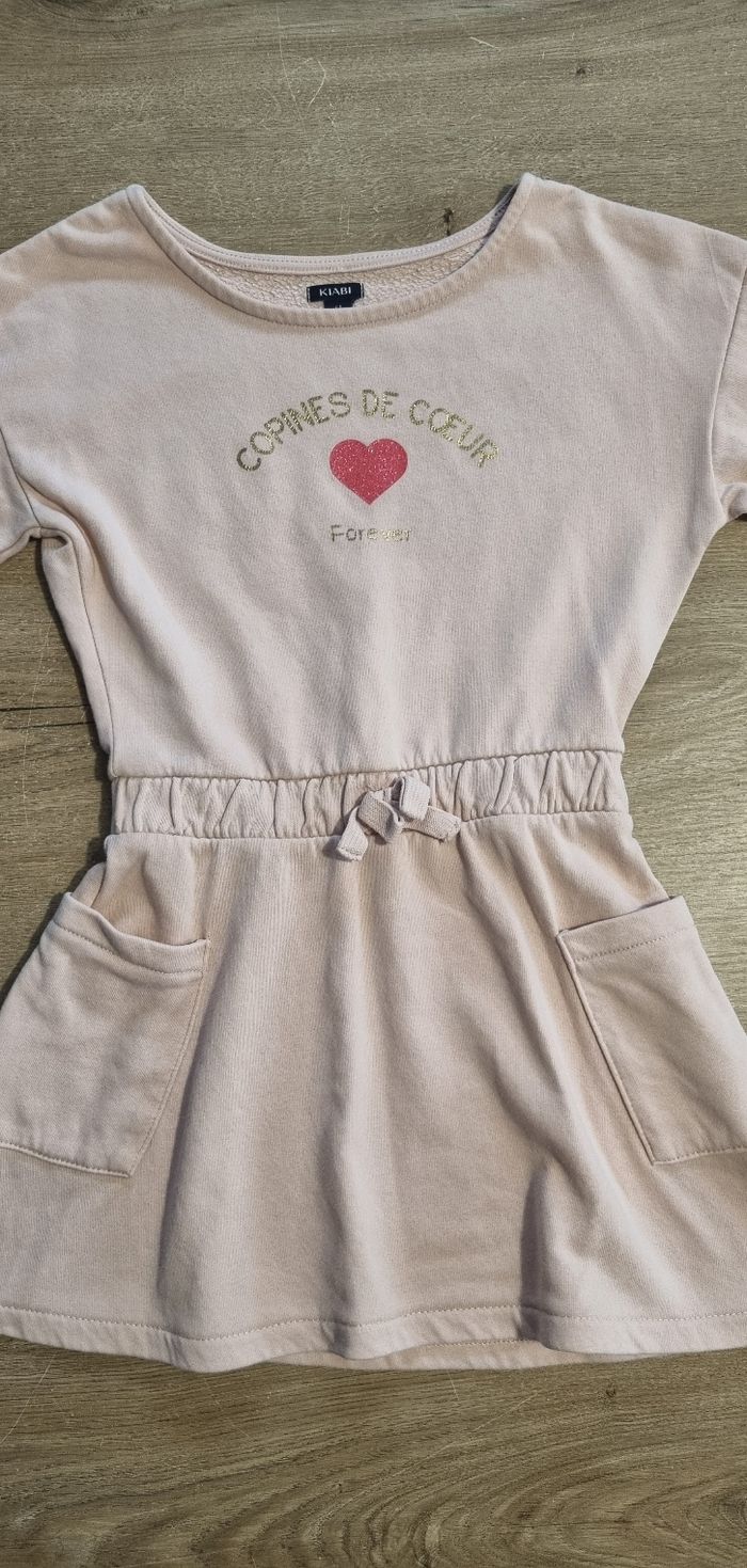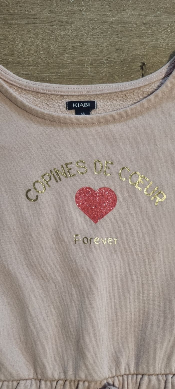 Robe à manches longues matière sweat, fourrée à l'intérieur Écriture et coeur pailletés Kiabi taille 6 ans Très bon état