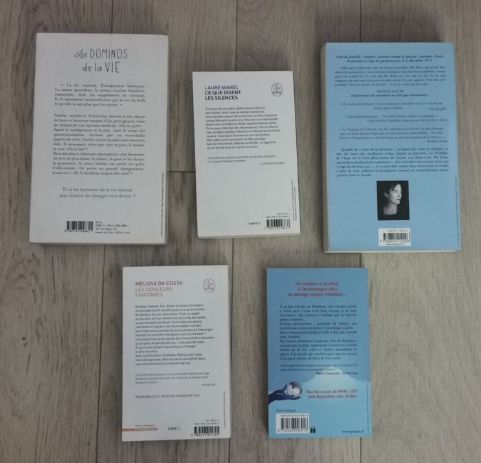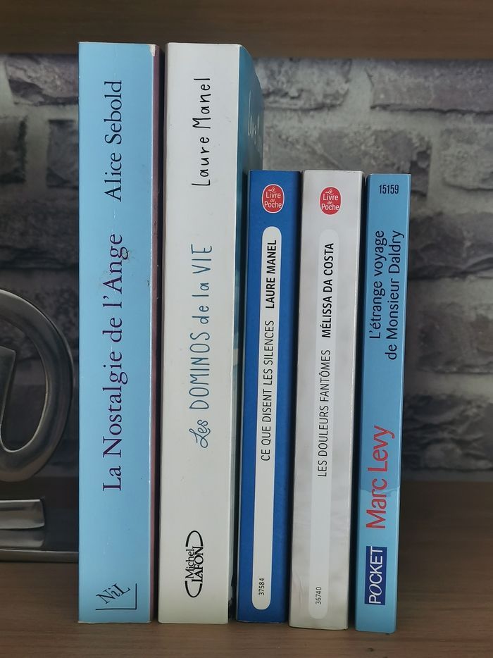 ✏️ Les Dominos de la vie Laure Manel Edition Michel Lafon Très bon état Ce qui disent les silences (vendu) Les douleurs fantômes (vendu) ✏️ La nostalgie de l'ange Alice Sebold NIL Editions Bon état ✏️ L'Étrange voyage de Monsieur Daldry Marc Levy Edition Pocket Très bon état