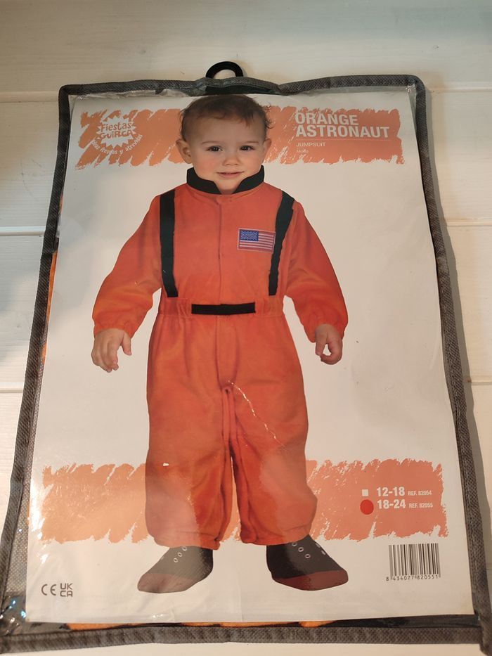 produit neuf Fiestas Guirca déguisement astronaute 18-24 mois comprenant une combinaison orange taille 89-93 cm