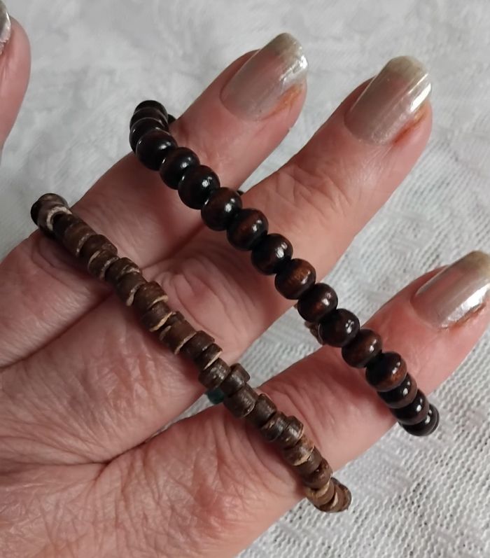 Lot de 2 bracelets perles en bois ,turquoise - élastique résistant - photo numéro 1
