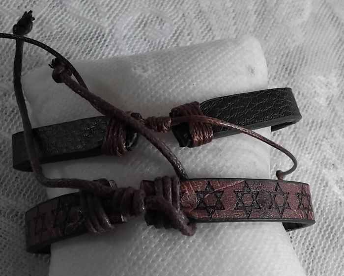Lot de 2 bracelets homme rétro cuir synthétique, perles bois - photo numéro 1