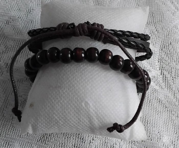 Lot de 2 bracelets hommes marron ,perles en bois - photo numéro 1