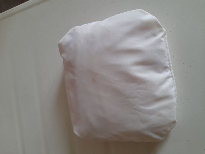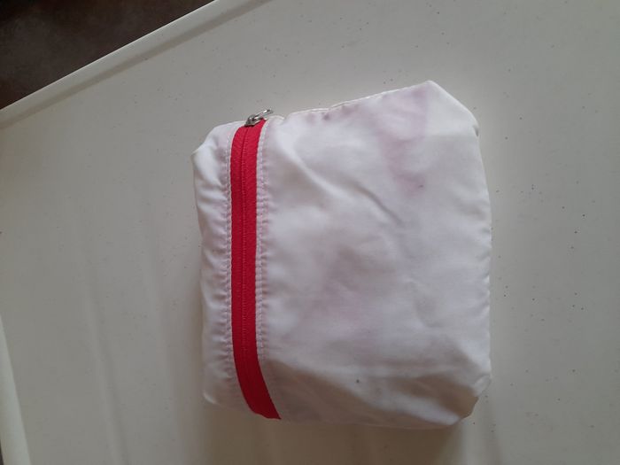 Petit sac de sport blanc pliable dans sa pochette longueur 45 cm diamètre 20 cm 2 euros