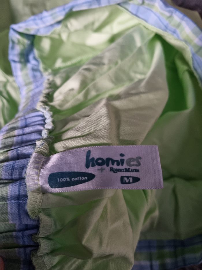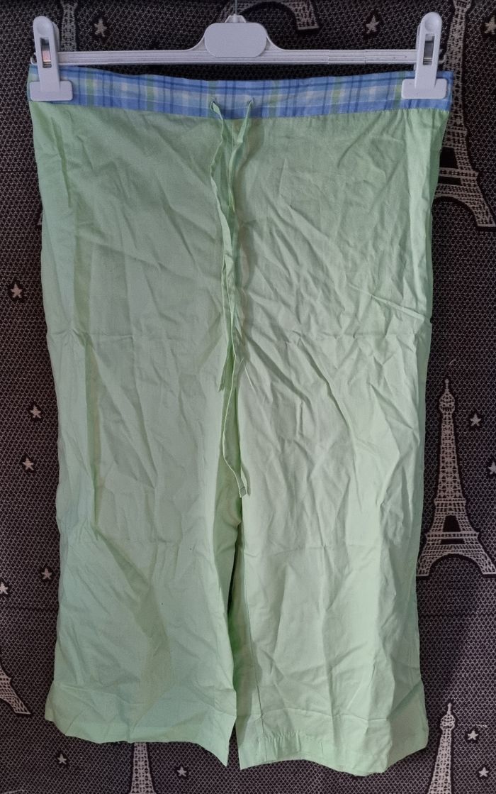 Pantacourt de pyjama vert clair,élastique à la taille avec cordon, taille M marque Robert Matra, longueur 80cm, largeur de la taille 40cm jusqu'à 45cm, largeur cuisse 29cm, largeur mollet 24cm.