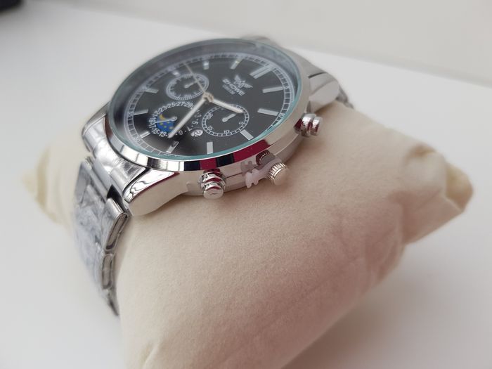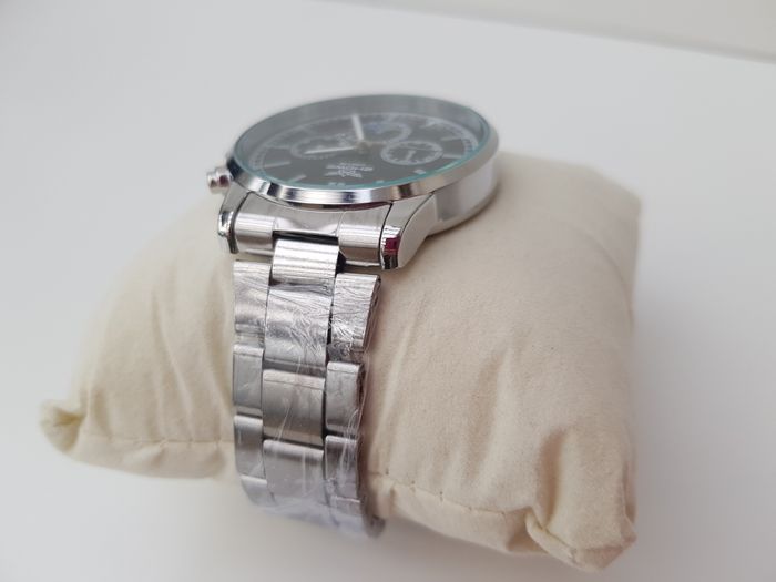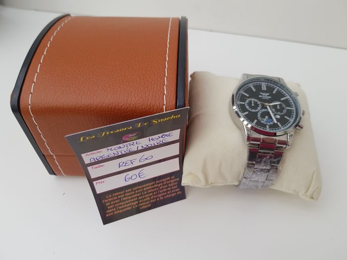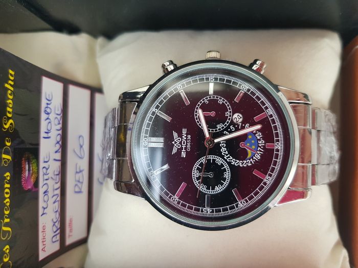 -Montre Argentée Noire Pour Homme -Montre argentée avec cadran noir et argenté a l'intérieur. -Montre en parfaite état neuve! Il y a encore la protection en plastique sur le bracelet! (PRIX LIQUIDATION!) -La montre est livrée dans son écrin en simili cuir marron. -Taille unique -L'article sera emballé avec soins et expédié avec soins. Pour la livraison : -Mondial Relay 24h après achat!