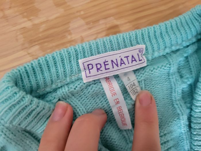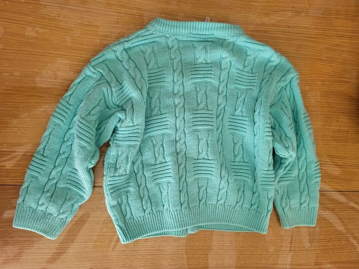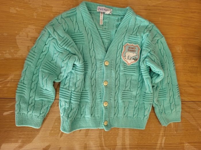Gilet chaud en laine avec boutons,provenance Belgique,couleur menthe (bleu/vert),4 voir 5 ans