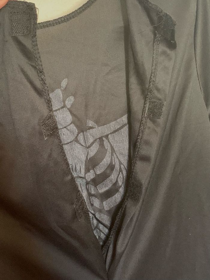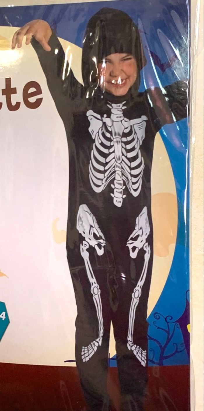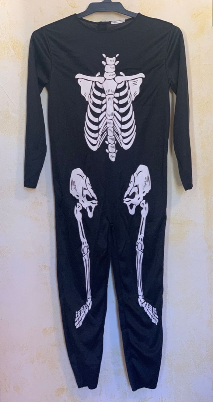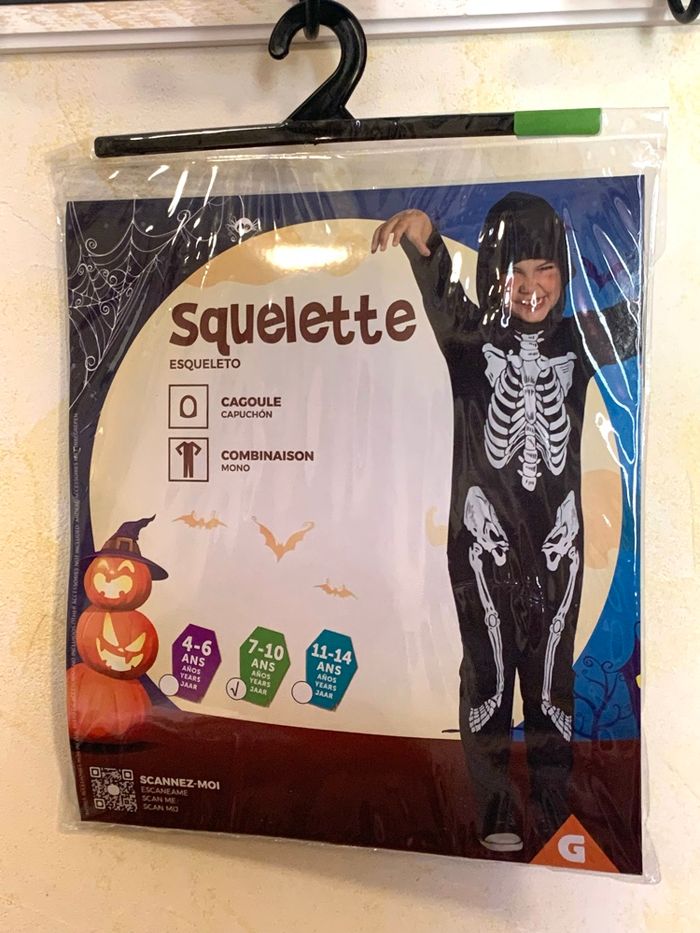 Déguisement enfant combinaison squelette Halloween T7-10ans Cagoule et la combinaison impression d'ossements sur le corps (pas sur les bras) Utilisé une fois l'an dernier #deguisementenfant #squelette #halloween #7ans #garcon