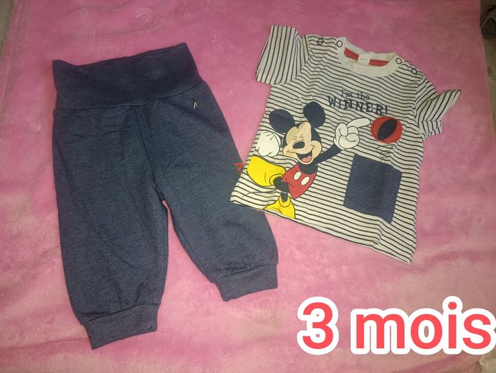 Ensemble mickey jamais porté à dormi dans l'armoire taille 3 mois .