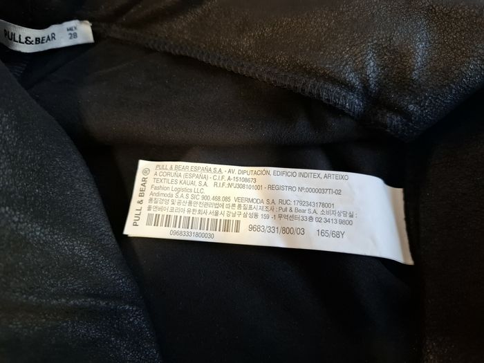 Superbe legging pour femme, marque Pull & Bear, taille M (38), couleur noir, aspect cuir/daim à s'y méprendre, en 90 % polyester et 10 % elasthane pour le tissu de base et en 100 % polyuréthane pour le revêtement, lavable à 40° et en excellent état, porté une fois, vraiment comme neuf et acheté 17 € sur le site .. J'ai le même dans mes ventes en taille S (36).
