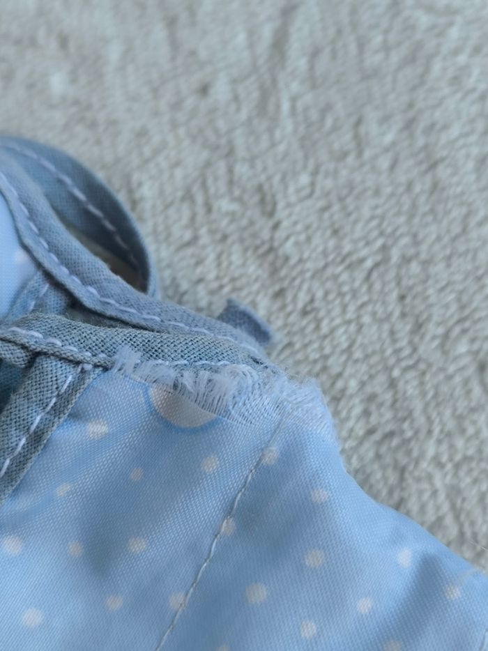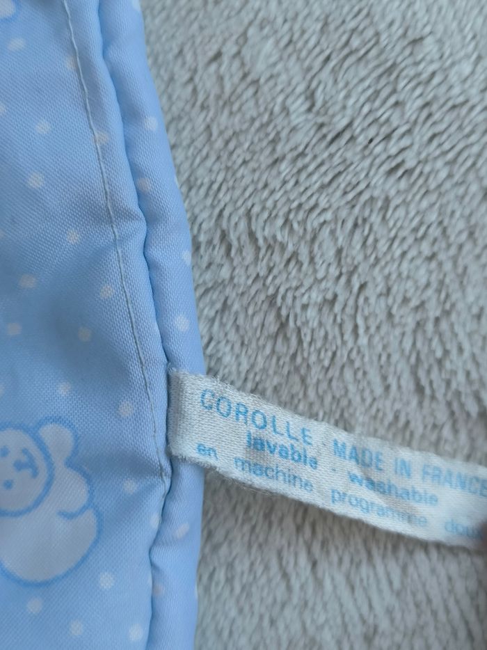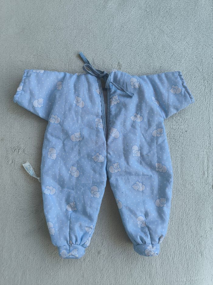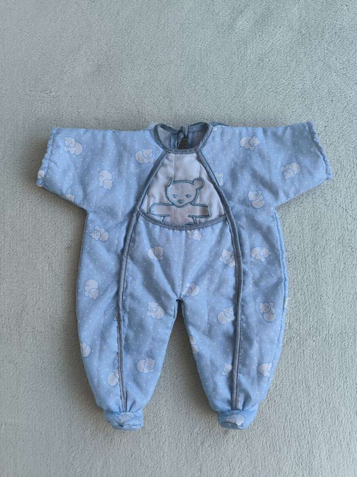 Combinaison Marque Corolle Poupon / Poupée : Probable 36 cm • Coloris bleu, blanc • Imprimés ours, pois • Laçage au dos • Intérieur polaire • Ourson qui se décolle, couture au col, petits accros • Élastique bas des manches détendu/non fonctionnel Longueur totale : 28 cm ⚠️ D'autres vêtements Corolle disponibles Vintage En état satisfaisant #evelyne_jeux