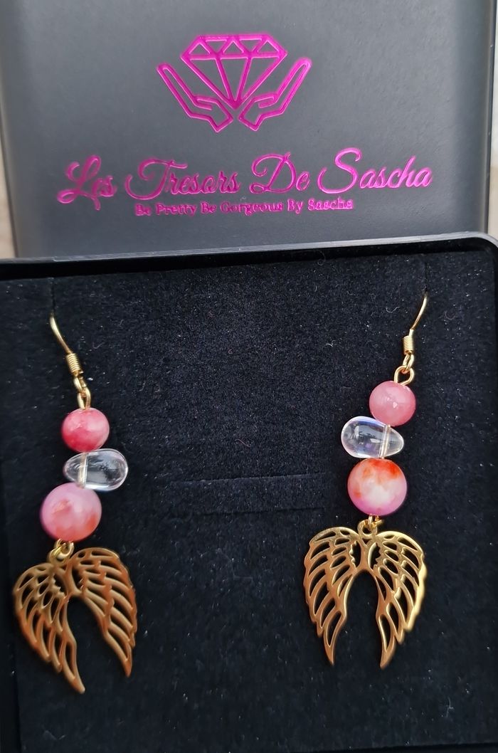 Boucles D'oreilles Ailes Acier Perles Calcedoine