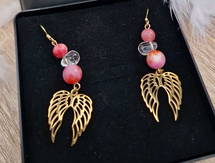 Boucles D'oreilles Ailes Acier Perles Calcedoine - photo numéro 1