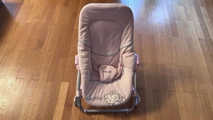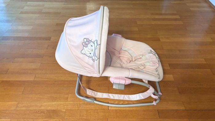Vends un adorable transat Hello Kitty rose et blanc, parfait pour le confort de bébé. Siège et dossier rembourrés tout doux Capote et siège réglables (fonction balancelle) Harnais 3 points pour une sécurité optimale Très léger et facile à transporter grâce aux grandes poignées Capote et siège amovibles pour un nettoyage facile Cadre en acier robuste Lavable à 30°C 📏 Dimensions : 51,5 x 65 x 67 cm ⚖️ Poids : 3,1 kg 🧺 État : Très bon état, propre et prêt à l’emploi.