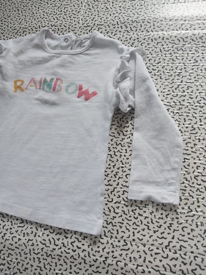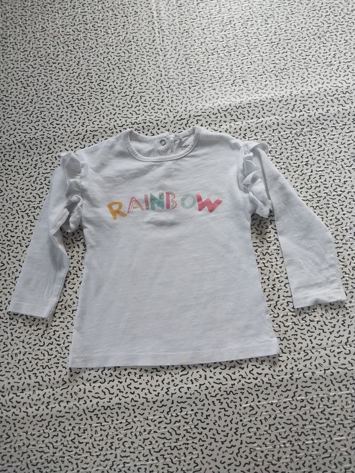 T-shirt blanc à volants sur les épaules, inscription colorée "RAINBOW" à l’avant 🌈 Fermeture pressionnée au dos pour un habillage facile. 🧵 Marque : Orchestra 📏 Taille : 23 mois (86 cm) 🎨 Couleur : blanc ⚠️ État : bon état général, légère petite tache discrète en bas (voir photo) 👶 Parfait pour un look doux et confortable du quotidien. #orchestra #tshirtbebe #hautbebe #23mois #bebefille