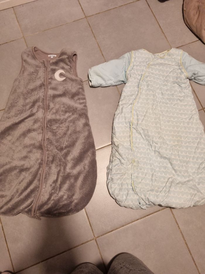Lot de 2 gigoteuses chaudes Une taille unique et une taille 2 (bleue) avec manches amovibles.