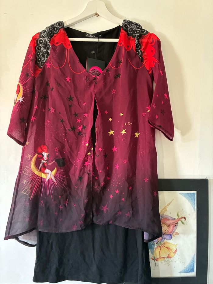 🎁 De jolies surprises Anatopik se glisseront dans le colis Sans Manche Modèle Géraldine Collection motif Mistinguette moulin rouge Tissu élastique Très agréable a porter Joli voilage à motifs Arrivé a mi cuisse Taille 36 Je me sépare de quelques pièces de ma collection Anatopik, n’hésitez pas à regarder mes autres annonces.