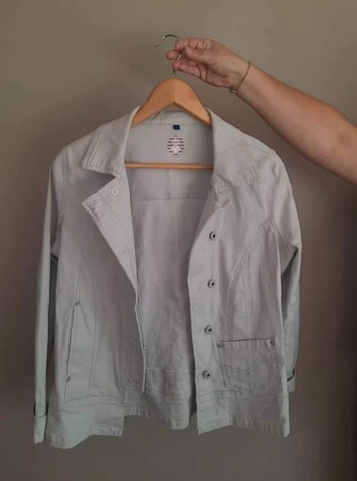Veste Spirit – Taille S Veste de la marque Spirit, taille S (indiquée 1). Couleurs gris clair / bleu, idéale pour un style casual et confortable. 💬 N'hésitez pas à me contacter pour plus d'infos ou de photos ! Pour les lots, une réduction automatique est appliquée. Je n'accepte donc pas d'offres supplémentaires sur les articles bénéficiant déjà d'une remise.