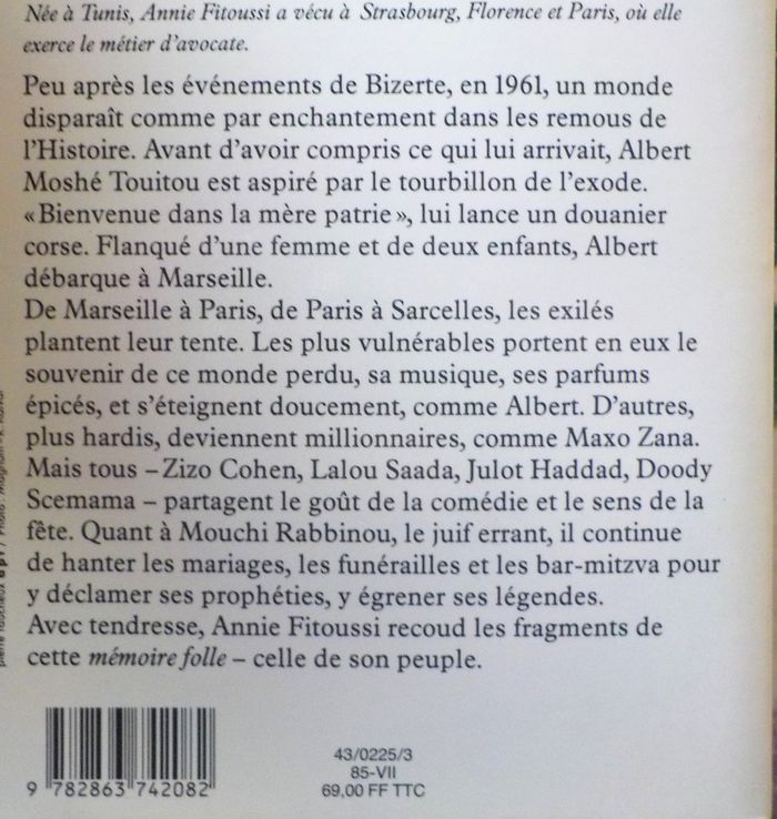 LA MEMOIRE FOLLE DE MOUCHI RABBINOU de Annie FITOUSSI Ed. Mazarine Bon état Résumé en photo n°2
