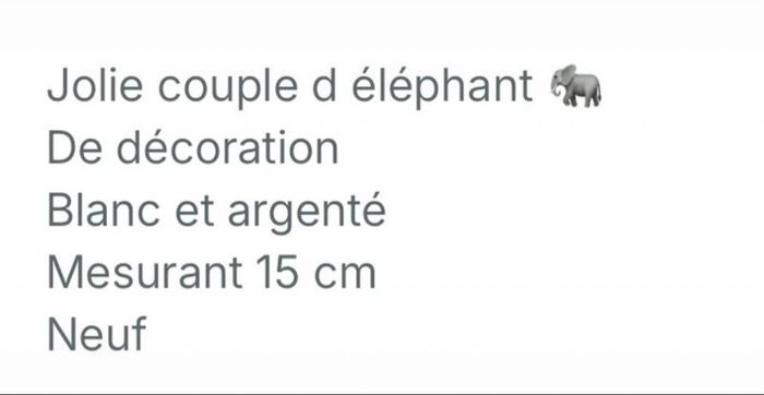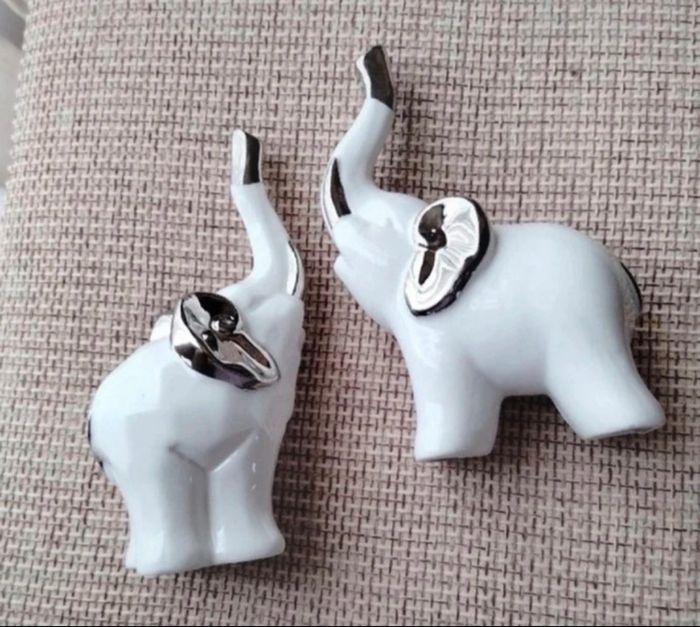 Jolie couple d’éléphant Blanc et argenté Céramique 15 cm de hauteur Neuf