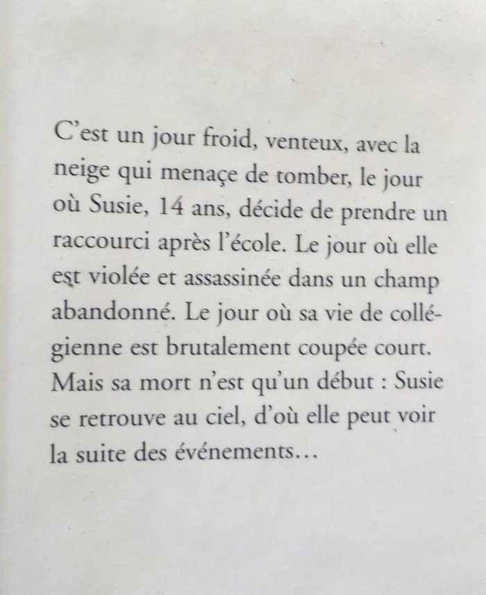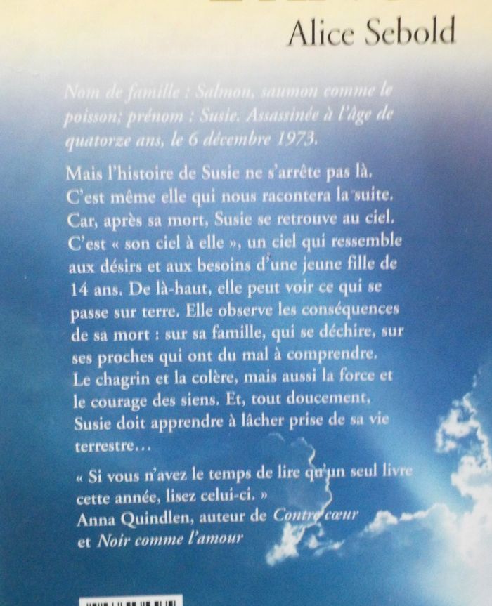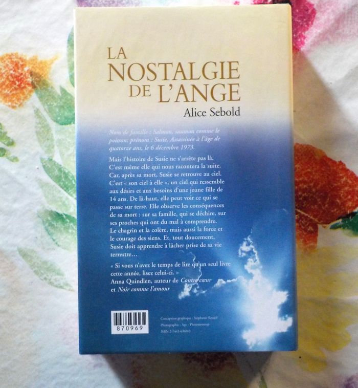 LA NOSTALGIE DE L'ANGE de Alice SEBOLD Ed. France Loisirs Très bon état Résumé en photo n°2