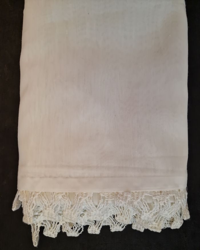 Rideau Beige Crème Avec Contour Macramé Crochet - 1 Rideau - Rideau porte/fenêtre - Rideau pour tringle fine - Rideau fait a la main État De L'Article: Seconde main dans un très bon état pour encore être accrocher (petite tache en haut au niveau de la tringle a l'arrière) Couleur: -Beige Crème Dimensions: - Largeur 85 cm - Longueur 143 cm Pour la livraison : -Mondial Relay 24h après achat!