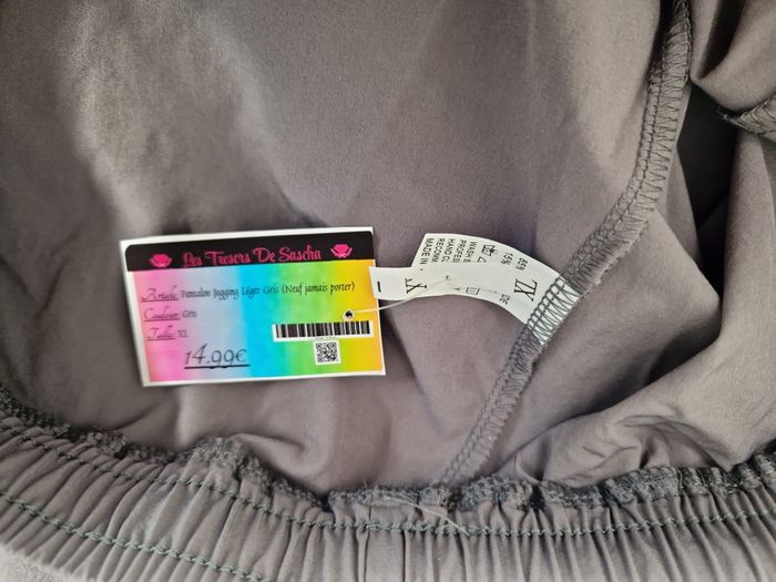 Pantalon De Jogging Gris Leger. -Pantalon homme -Pantalon taille élastique et lien élastique de serrage -Pantalon avec poches État De L'Article: -Neuf jamais porter Couleur: -Gris Taille: - XL Dimensions: -Largeur taille 38 cm non étiré et 52 cm étiré au max. -Longueur jambes 100 cm -Largeur haut de jambes 29cm et bas de jambes 20 cm Matière : 85% Polyamide 15 Spandex Pour la livraison : -Mondial Relay 24h après achat!