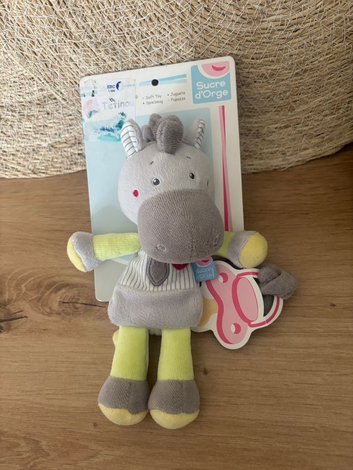 Neuf sur son carton Envoi rapide #doudouzebreattachesucettesucredorge #doudouchevalgrisjaunetetinesucredorge