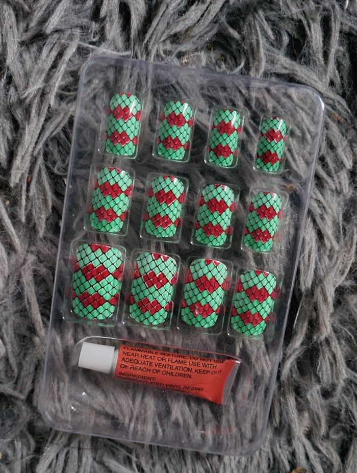 Faux ongles vert et rose, style Harley Queen,marque Mei jia er,avec colle.