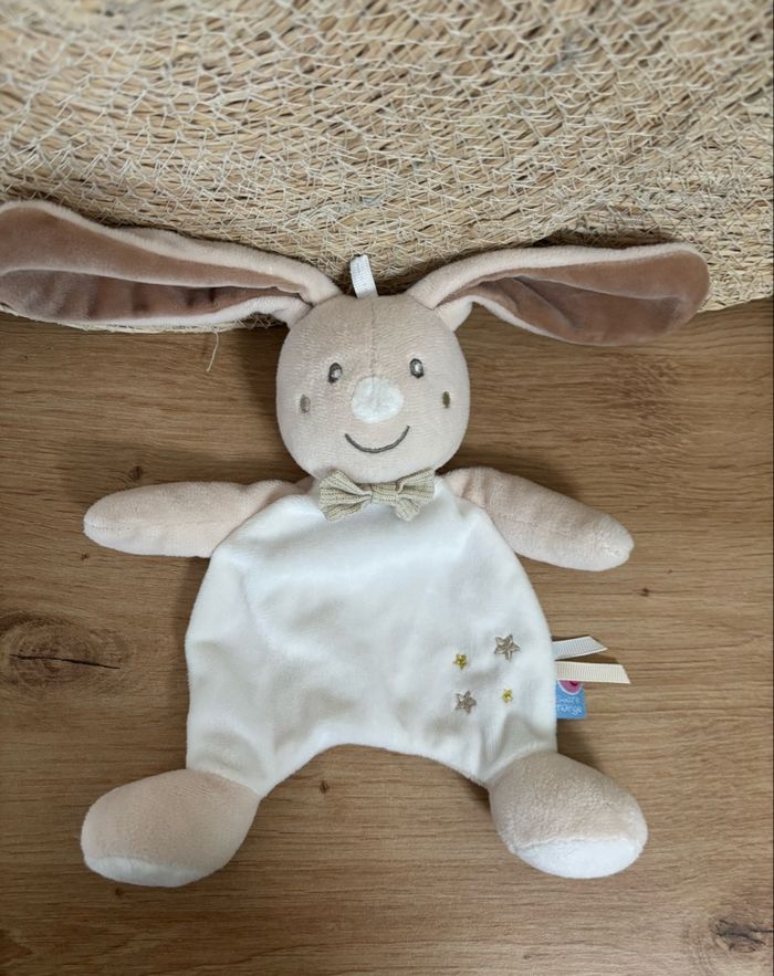 Neuf doudou plat lapin beige blanc étoile sucre d orge - photo numéro 1
