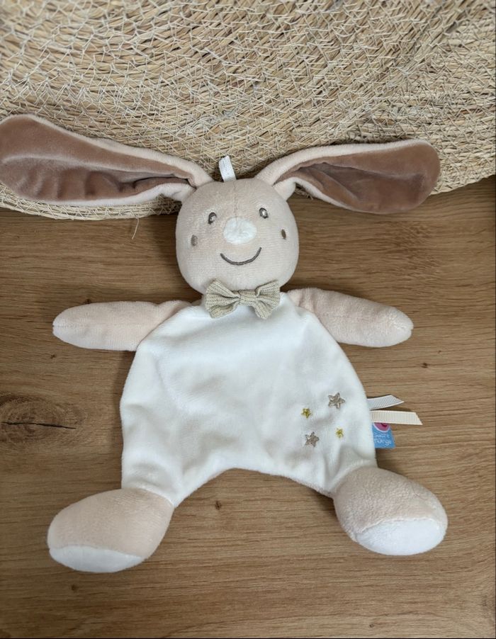 Neuf doudou plat lapin beige blanc étoile sucre d orge