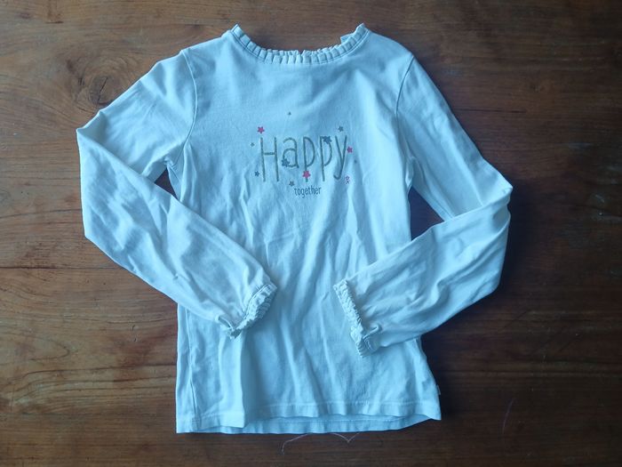 T-shirt a manches longues blanc marqué "Happy" Marqué Okaidi Taille 8 ans / 128 cm Très bon état, très peu porté