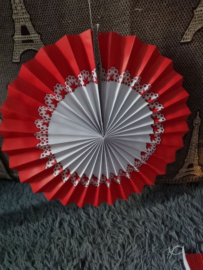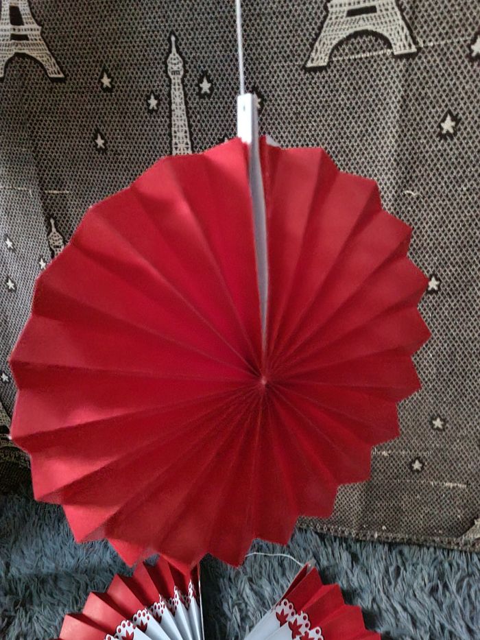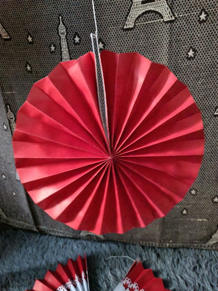 Lot décorations de noel ou autres événements, rosace papier cartonné pliable (éventail), l'une mesures 42X42cm et l'autre 30X30cm.