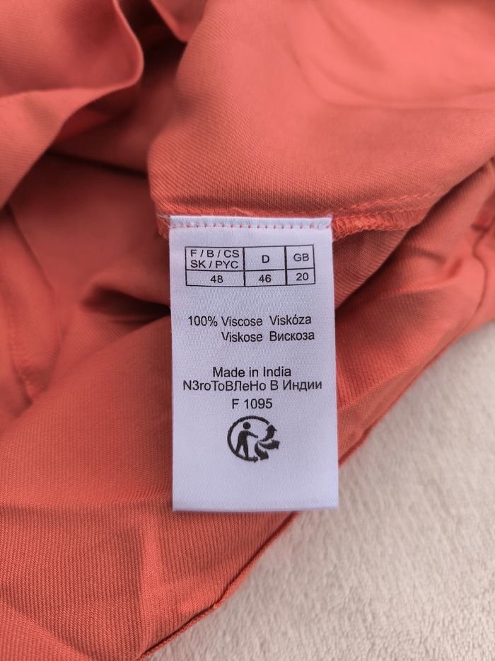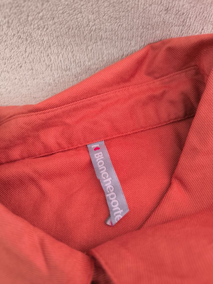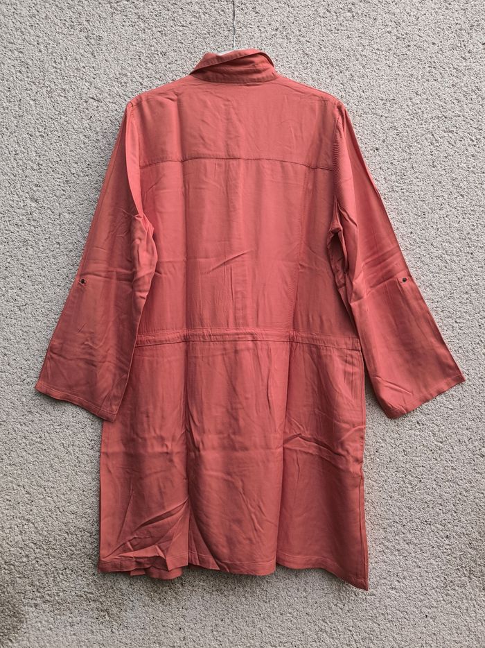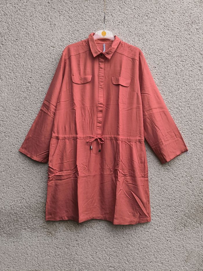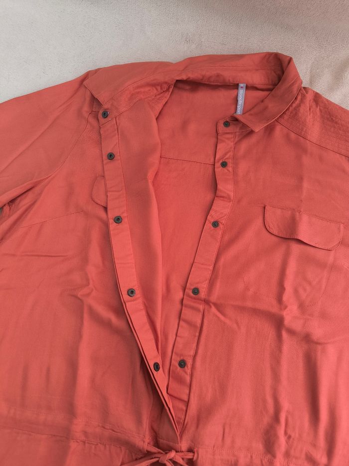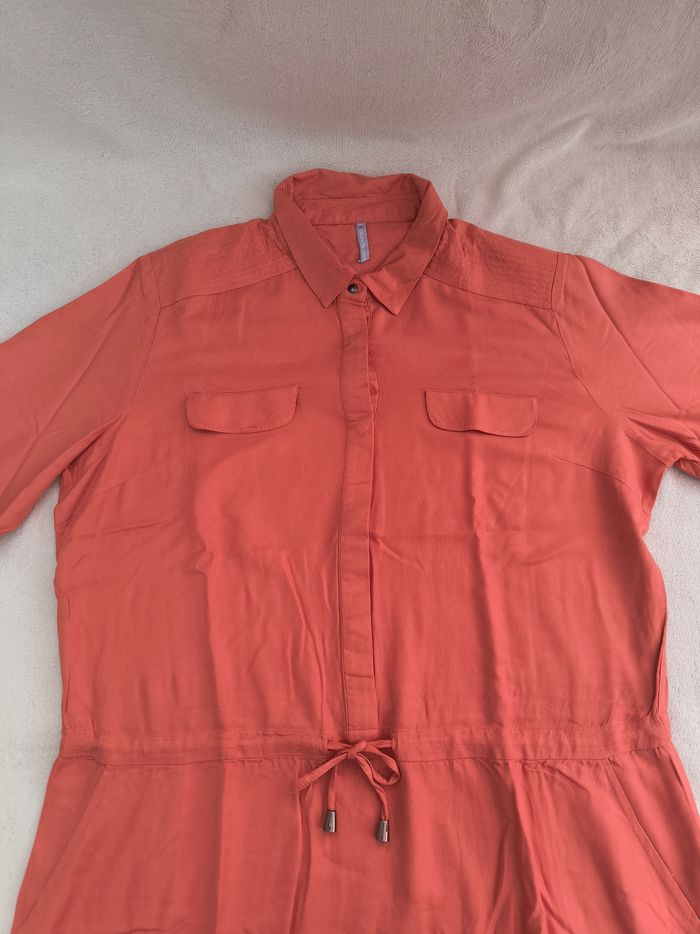 Robe à manches longues Marque Blancheporte Taille 48 • Coloris orange terracotta, corail • Col style chemise avec pressions • Cordons de serrage à la taille • Manches rétractables avec pression • 2 poches, fausses poches supérieures • Fil de tiré sur le bas d'une manche Largeur épaule à épaule non étirée : 44 cm Largeur épaule à épaule étirée au maximum : 46 cm Largeur aisselle à aisselle non étirée : 60 cm Largeur aisselle à aisselle étirée au maximum : 66 cm Longueur manche : 60 cm Longueur totale : 100 cm Longueur aisselle : 73 cm Comme neuve #evelyne_taille_48